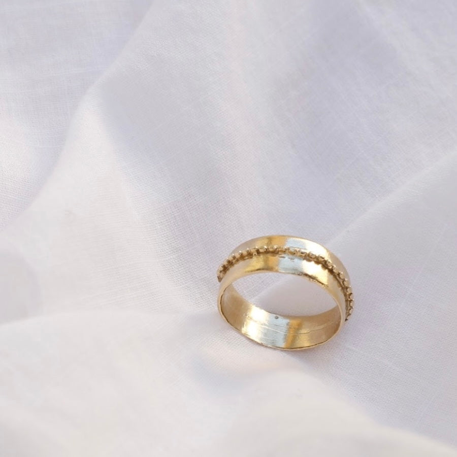 הטבעת עשויה כסף 925 ומצופה בזהב 24 קראט , בעובי של 3.5 מקרון.