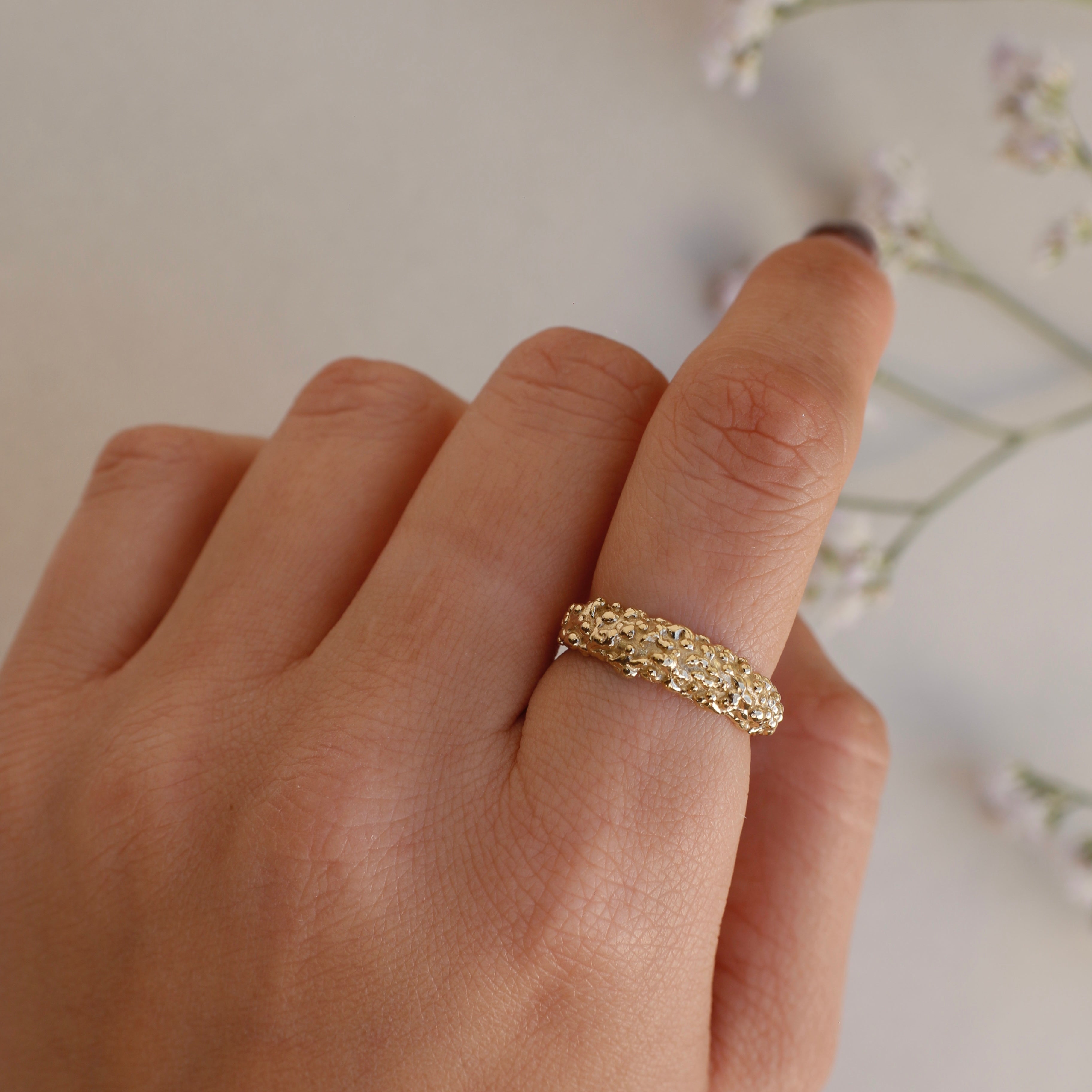 הטבעת עשויה כסף 925 ומצופה בזהב 24 קראט , בעובי של 3.5 מקרון.
