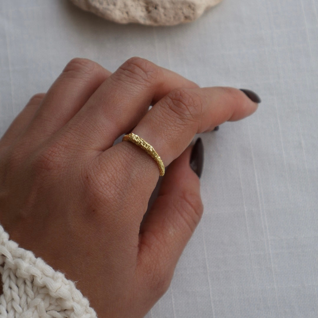 הטבעת עשויה כסף 925 ומצופה בזהב 14 קראט , בעובי של 3.5 מקרון.