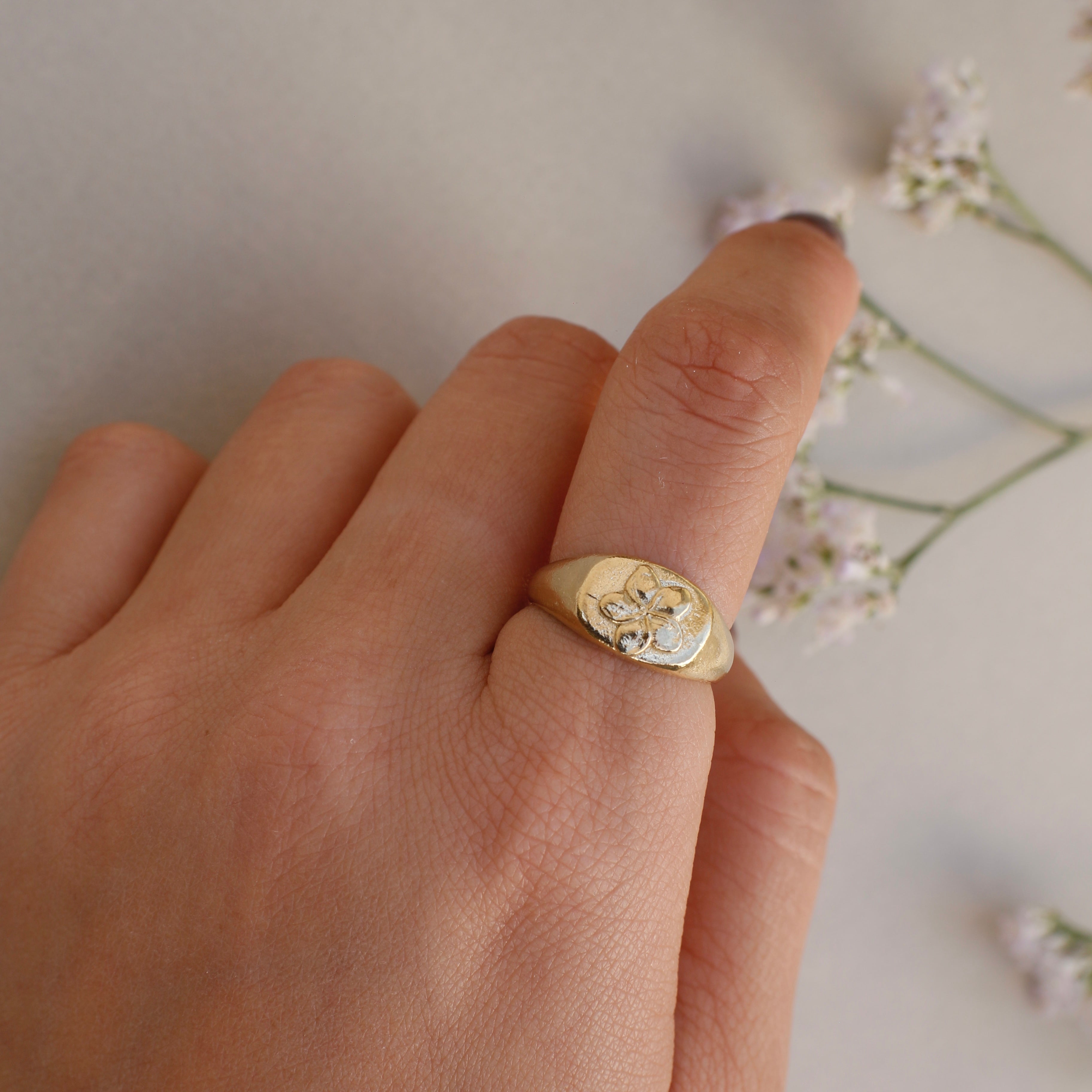 טבעת פלורה חותם בציפוי זהב