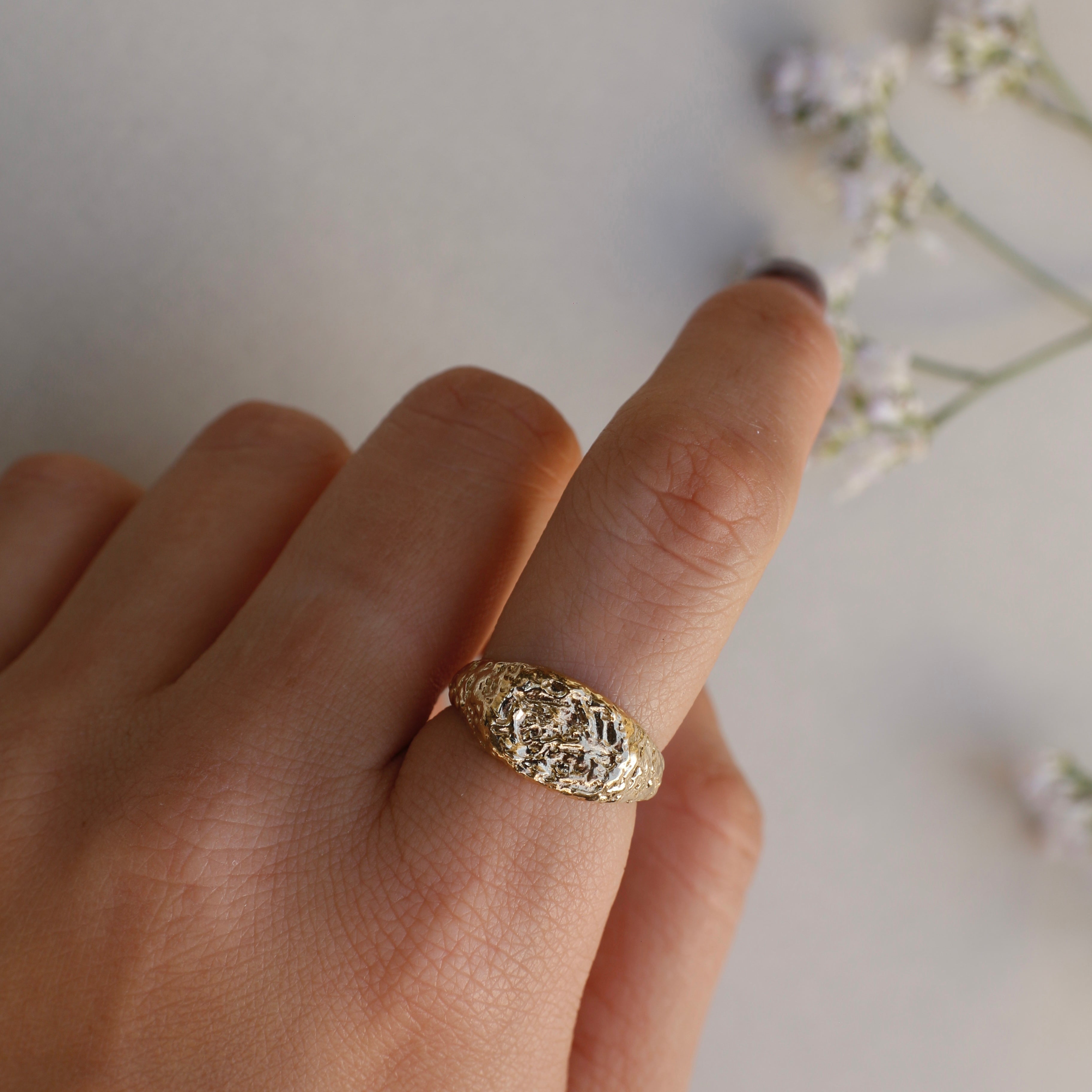 הטבעת עשויה כסף 925 ומצופה בזהב 24 קראט , בעובי של 3.5 מקרון.