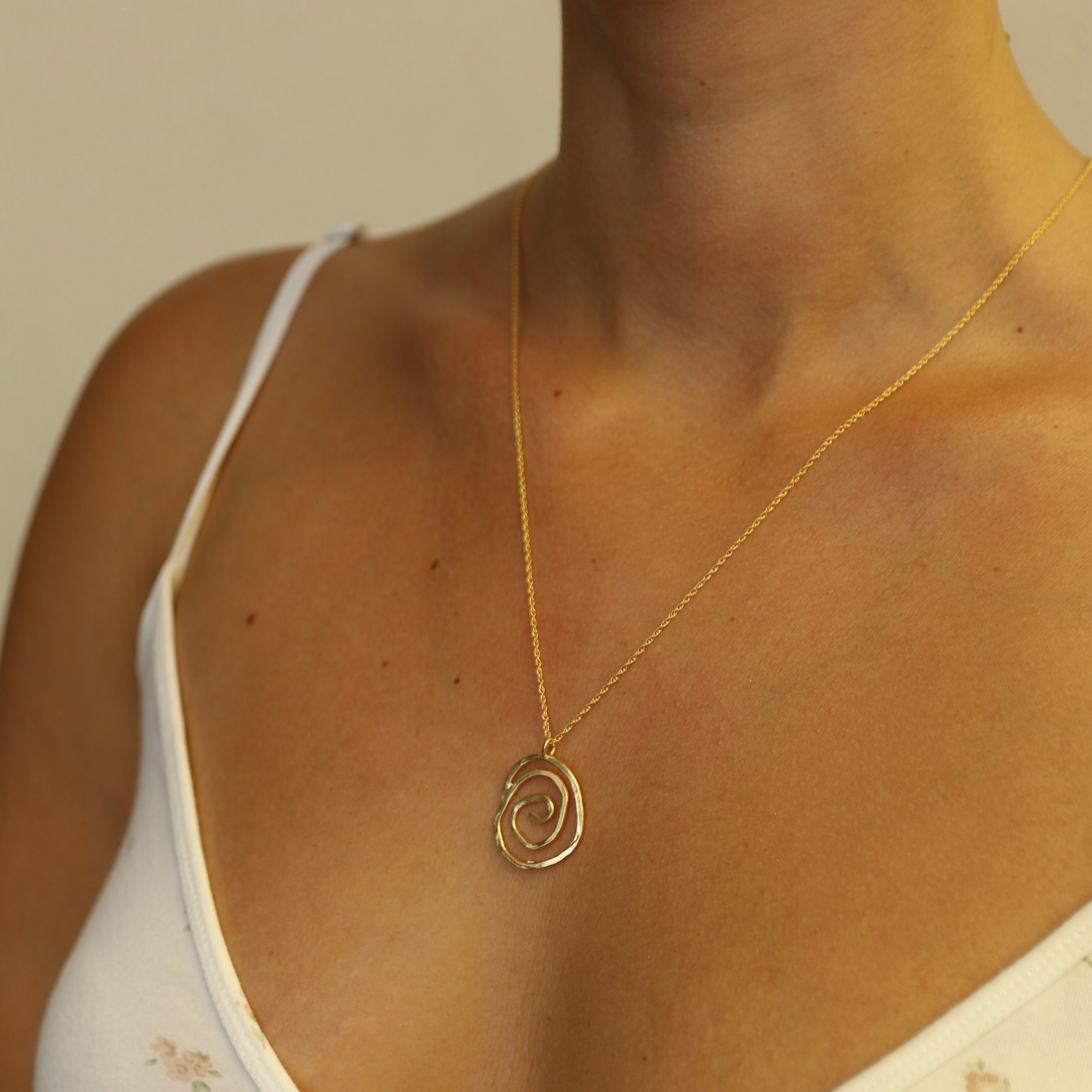 שרשרת סמואל עם תליון אליפסה אסמטרי. השרשרת עשויה גולדפילד.