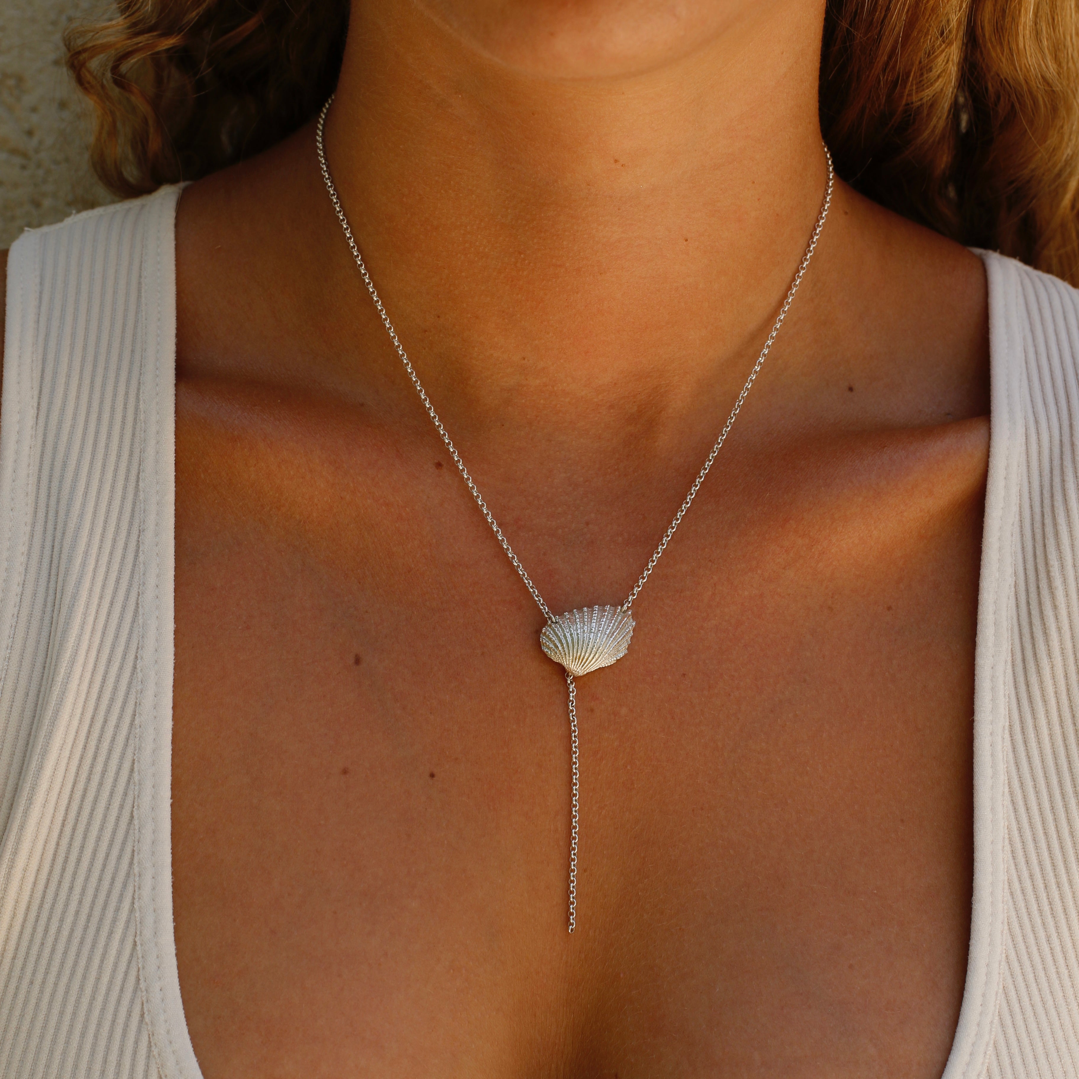 היא שרשרת כסף 925 עם תליון כסף בצורת צדף מיוחד שמצאתי בפנמה. היא שרשרת שמושלמת לשילובים עם שרשראות קצרות ועדינות יותר.