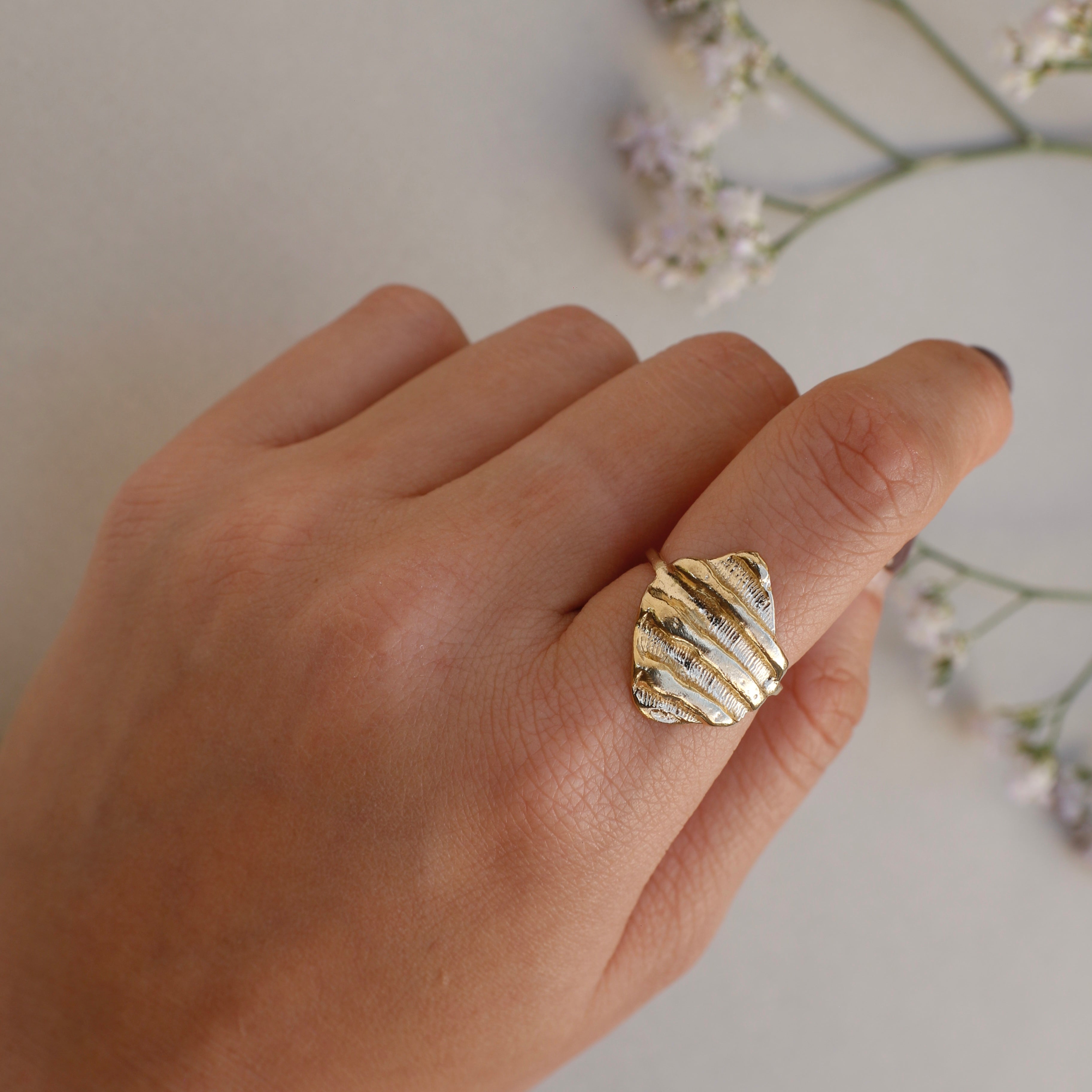 הטבעת עשויה כסף 925 ומצופה בזהב 24 קראט , בעובי של 3.5 מקרון.